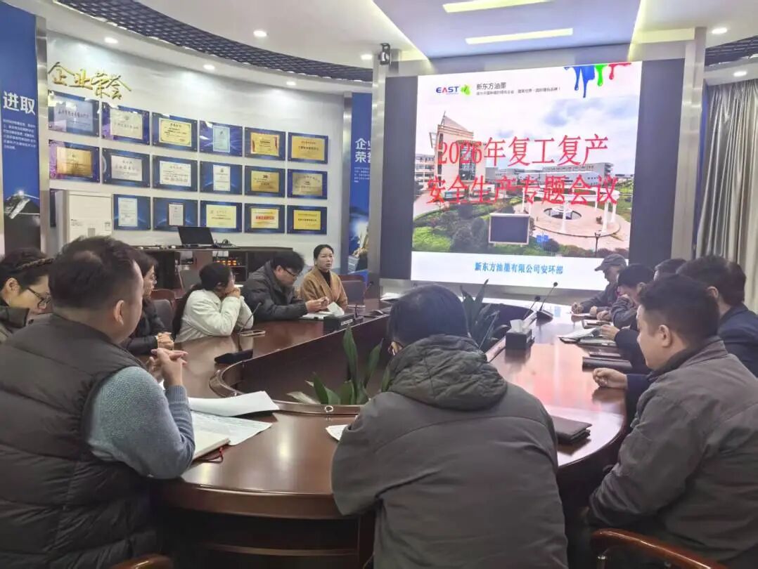 新春伊始,生产渐趋复苏。为切实防范节后复工复产的安全风险,坚决守住危险化学品安全生产的底线,新东方油墨有限公司严格对照企业复工复产“六个一”要求,全面开展复工前的安全准备工作以及条件确认,确保装置平稳启动、人员安全到岗、生产有序恢复。