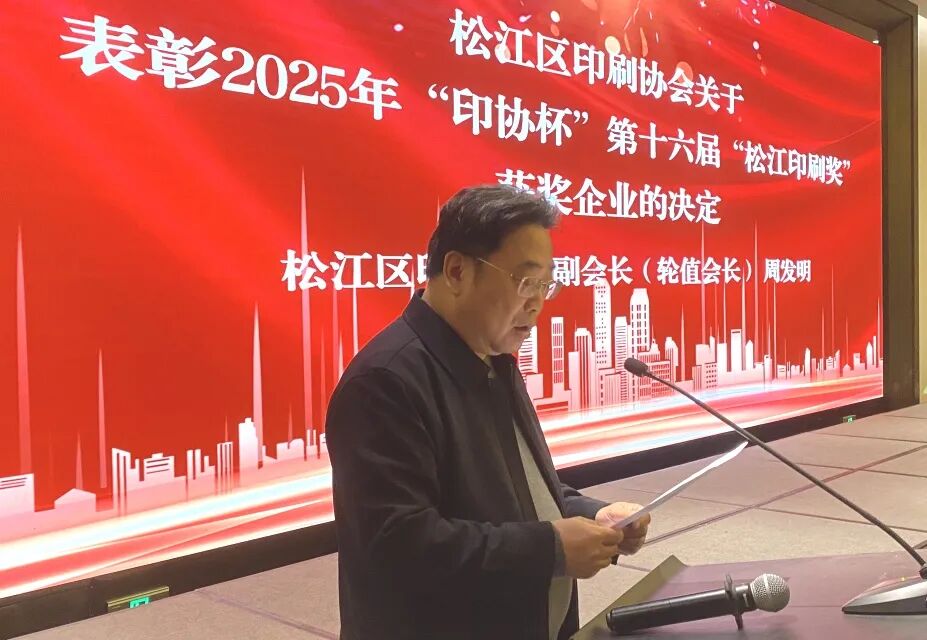 协会副会长(轮值会长)乔冠中作2025年度财务收支报告;监事长查跃国作2025年度监事会工作报告;副会长(轮值会长)周发明宣读《关于表彰2025年“印协杯”第十六届“松江印刷奖”企业的决定》。 2025年,协会为会员单位展示品牌、树立形象搭建平台,成功举办了“印协杯”第十六届“松江印刷奖”评选活动,与会领导为荣获2025年“印协杯”第十六届“松江印刷奖”的单位进行了颁奖。 ![]() 颁发第十六届“松江印刷奖”金奖 ![]() 颁发第十六届“松江印刷奖”银奖 ![]() 颁发第十六届“松江印刷奖”铜奖