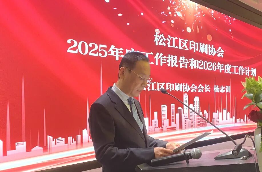 区文化和旅游局党组成员、副局长胡晓松作讲话,对协会围绕区文旅局中心工作、宣传相关政策法规、引导印刷产业发展、践行绿色可持续发展、开展富有成效活动、以及为促进松江区印刷业的健康有序发展作出了应有的贡献等协会2025年的工作成效给予了充分肯定。对关心、支持印刷协会工作的领导和同志们表示衷心的感谢。并向荣获第十六届“松江印刷奖”的企业表示衷心的祝贺。同时对协会2026年工作提出三点要求:一是要学习贯彻党的二十届四中全会精神,共绘“十五五”开局蓝图;二是要落实2025上海市印刷业创新发展大会精神,推动数智化发展;三是要继续发挥协会自律职能,强化印刷行业管理。