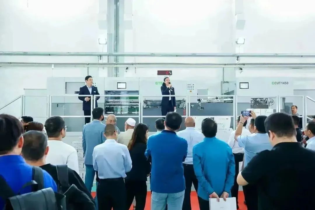![]() ![]() 整场活动最令人期待的环节是新产品的开机演示。多台新品有序开机,一叠叠印刷精美、精准成型的纸箱飞快的呈现在众人面前。各位来宾纷纷向前围住机器,或拿起印刷好及装订成型的纸箱、或是不断向销售人员咨询各种问题、或是细细研究工艺、或是互相交流意见。随后,众人还在各位向导的带领下,参观了旭恒精工加工车间、生产车间、装配车间……欧美标准厂房建设、现场6S精细化管理与花园式厂区规划让参观来宾赞叹不已、收获满满! ![]() 大家一起前往晚宴会场。席间,音乐与美酒映衬,营造出和谐共融的氛围。 ![]() 上海旭恒精工董事总经理谢强博士向各位来宾致祝酒词。 整场活动在轻松愉快的氛围中圆满结束。