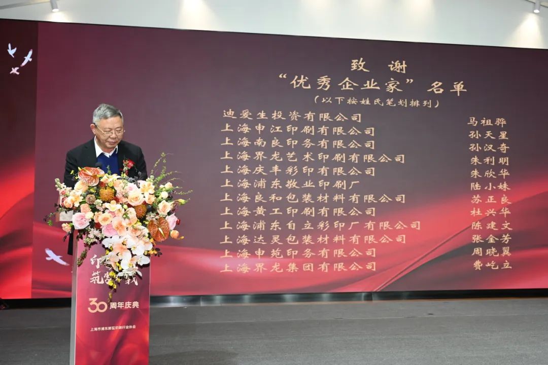 12月5日下午,浦东印协三十周年庆典在界龙总部园举行。中国印刷技术协会常务副会长禇庭亮、中共上海市委宣传部印刷发行处处长曾原、浦东新区文化市场管理所邢喜森所长、上海包装技术协会钱祁锡会长、上海市印刷技术协会沈剑毅会长、中国印协柔印分会周建宝会长及各区印协会长、秘书长、媒体代表、浦东印协全体会员共300多人参加。中国印刷技术协会、北京科印传媒文化股份有限公司及市区协会与媒体共12家单位发来贺信。 ![]() ![]() 庆典大会由浦东印协副理事长、上海翔港包装科技有限公司董事长董建军主持。 ![]() 浦东新区印刷行业协会理事长费屹豪先生首先致欢迎辞,他声情并茂回顾了浦东印协从无到有,从小到大的发展历程,浦东印刷人在挑战与机遇中成长壮大并共创辉煌的三十年。 ![]() 浦东新区文化市场管理所邢喜森所长在致辞中充分肯定浦东印协三十年在搭建服务平台,促进行业内的合作共赢,推动行业发展中发挥的积极作用。 ![]() 上海市印刷行业协会沈剑毅会长在致辞中说:三十年来,浦东印协顺势而为,始终把服务会员、规范行业发展作为办会宗旨,在引领行业创新转型、发挥桥梁纽带作用、推进绿色印刷等方面提供了实实在在的服务,深得会员企业的拥护和主管部门的肯定,浦东印协获“5A”荣誉可谓实至名归。 ![]() 上海市委宣传部印刷发行处曾原处长致辞,他从浦东行政区划和浦东产业发展脉络中两个维度对浦东印协工作予以充分肯定。他说:站在2024年末这一时间节点,我们可以很自豪地说,不管是行政区划的浦东新区还是地理位置的浦东地区,浦东印刷产业成果丰硕,龙头企业引领作用明显,在上海印刷业发展中具有举足轻重的作用。他希望浦东印协继续发挥自身优势,积极引领行业向“绿色化、数字化、智能化、融合化”方向转型,搭建好技术交流平台,帮助企业解决在转型过程中的难点、痛点、堵点问题,推动印刷业实现量的合理增长和质的有效提升。 ![]() 中国印刷技术协会禇庭亮常务副会长致辞,他在肯定浦东印协工作成效同时,希望浦东印协在加快发展新质生产力,传递最新技术、提供解决方案、推动创新成果,展现更多引领新质生产力发展的“硬科技”方面谱写新时代印刷业高质量发展的新篇章。 ![]() 在时间的长河中,每一滴油墨都承载着故事,每一个包装都镌刻着记忆。浦东印协三十岁生日之际,协会精心制作一部《印领未来,筑梦三十载---浦东印协成立三十年》宣传片,与会者搭乘影视这艘创意之舟,穿越时光的隧道,共同见证浦东印协的辉煌历程与璀璨未来。 ![]() 三十年风雨兼程,三十年春华秋实,浦东印刷行业协会不仅见证了我国印刷行业的蓬勃发展,更携手每一位同仁,书写了无数创新与辉煌的篇章。在庆贺浦东印协三十周年之际,庆典活动举行了“感谢”仪式,感谢为印刷事业做出卓越贡献的印刷创业前辈、感谢印刷后起之秀、感谢优秀协会工作者。 ![]() ![]() 在庆贺浦东印协三十周年之际,庆典活动举行了“感谢”仪式,感谢为印刷事业做出卓越贡献的印刷创业前辈、感谢印刷后起之秀、感谢优秀协会工作者。 ![]() 随着夜幕的降临, 庆典晚会大幕随之拉开,晚会为大家呈现一台精彩纷呈的文艺节目,会员们欣赏由浦东印协首任理事长、界龙集团董事会主席费钧德先生领衔的界龙萨克斯乐队演奏的《龙腾四海》《祝酒歌》。 ![]() 浦东印协理事长费屹豪与王冰冰合唱《 大风吹 》,活力四谢的舞姿引来满堂喝彩。 ![]() 在庆祝浦东印协成立三十周年之际,既是企业家又是画家的夏建峰为晚会献上一幅他亲自创作的国画《喜上眉梢》。更是增添了浓墨重彩的一景。 ![]() 上海印亿公司总经理、浦东印协副理事长唐忠为大家献上一曲《永远是朋友》。 ![]() 上海界龙艺术有限公司聋人舞蹈团为大家表演舞蹈《不忘初心》。 ![]() 上海印亿公司亿红传媒为大家带来沪剧表演《办喜事》和《燕燕做媒》。 ![]() 界龙集团王冰冰老师女声独唱《再一次出发》将晚会推向高潮。 ![]() 大家衷心祝愿浦东印协的明天更加美好,祝愿在座的每一位领导、嘉宾、企业家们身体健康、事业有成、家庭幸福!祝愿浦东印协携手并进,共同书写浦东印协更加美好的明天!