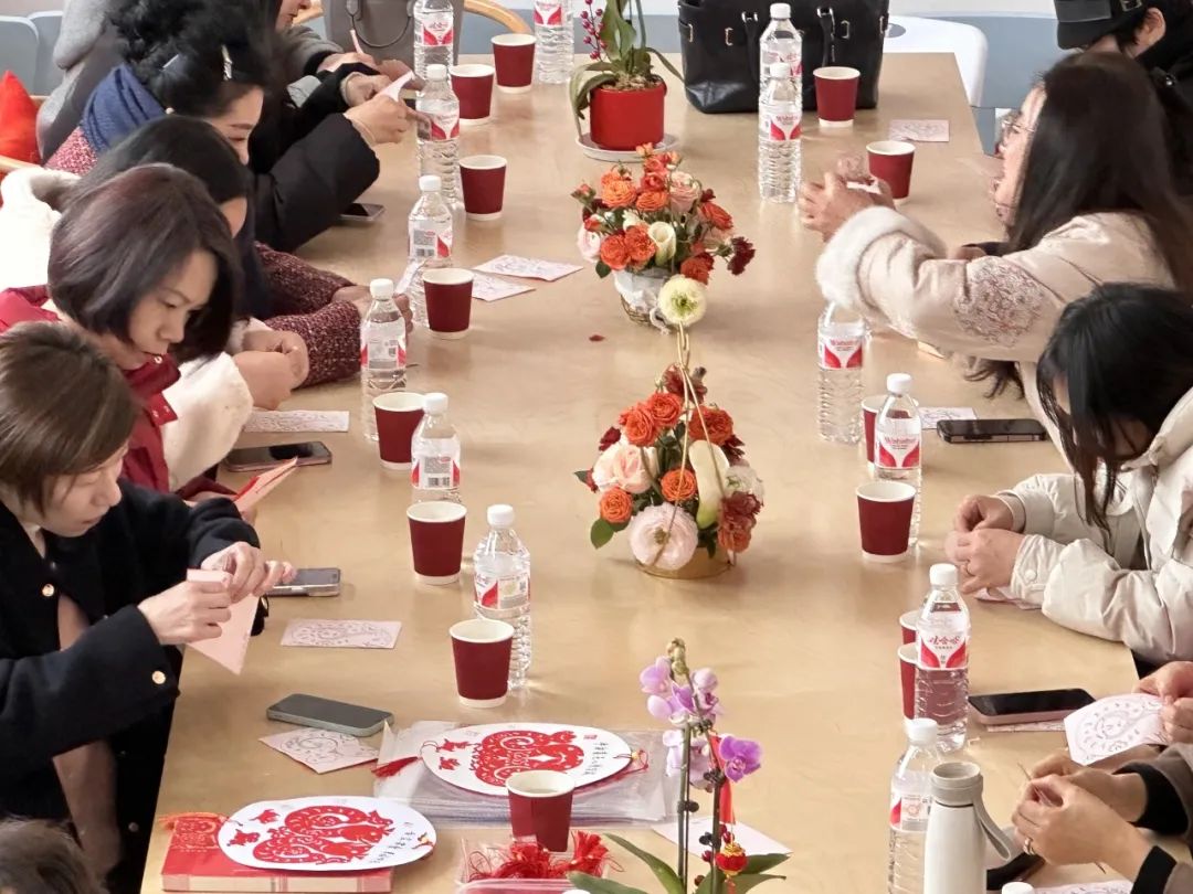 纸屑如雪花般悄然飘落,不一会儿,一张张普通红纸便在她们手中幻化成充满韵律与美感的蛇年撕纸艺术品。得到华老师肯定时,大家的脸上都绽放出喜悦的笑容。