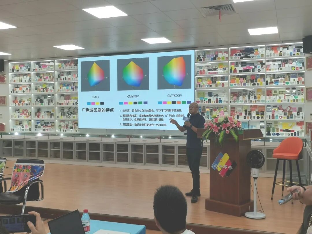 交流分享环节,上海泛彩、Hybrid妙华软件、杭州科雷、日本小森、航华油墨、征途检测、香港APTEC等行业资深专家从不同角度作了精彩演讲,介绍了广色域印刷色彩管理方案和流程,分析了面临的挑战,分享了测试的结果,使与会者了解到最新的色彩技术和应用,体验到技术的创新变革。活动现场,精彩的演讲,引起阵阵热烈的掌声,大家纷纷举起手机拍照记录,为广色域印刷注入了新的活力。