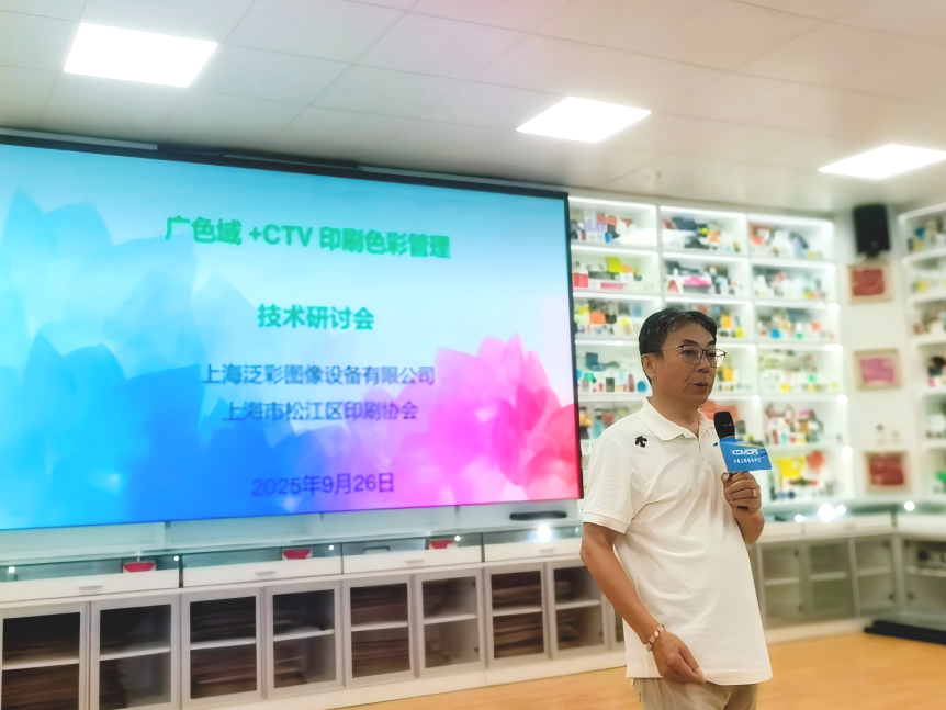 为更好地服务好印刷企业,为印刷企业提高产品质量、降低成本,提高企业竞争力提供有力支持,9月26日下午,松江区印刷协会联合会员单位上海泛彩图像设备有限公司在上海小林印务印艺·共享空间举办广色域+CTV色彩管理技术研讨会。本次活动邀请了多位行业专家、企业高管、印前、色彩管理工程师进行现场讲解。松江区印刷协会副会长兼秘书长张艳、副会长(轮值会长)吴联仓,以及区印协会员单位负责人、技术人员、兄弟印协等专业人员40余人参加研讨会。研讨会由会员单位上海泛彩图像设备有限公司总经理莫春锦主持。