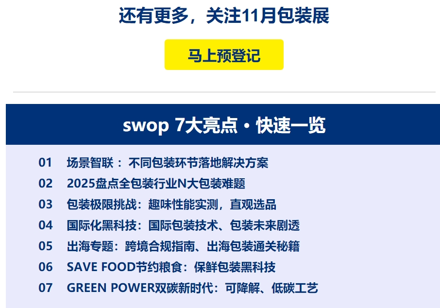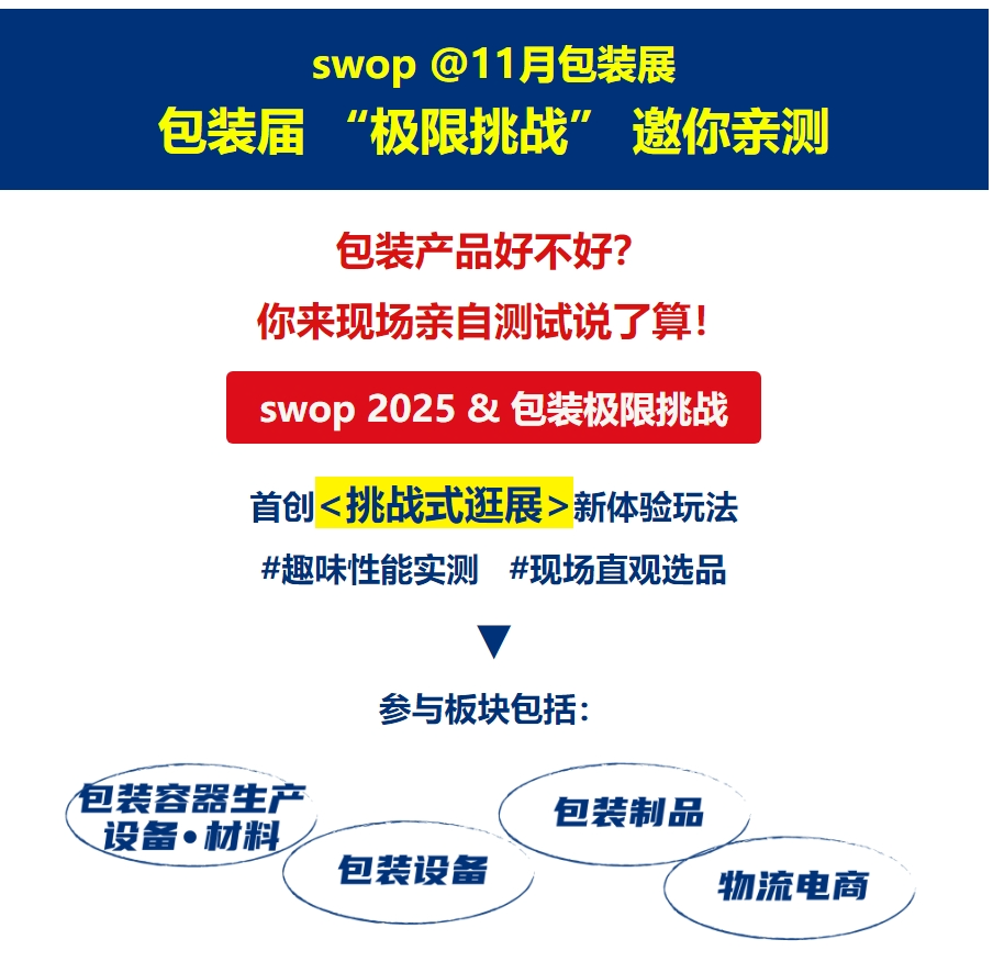 SWOP 11月包装展邀您玩转包装黑科技!新闻来源: 发布时间:2025-10-11 08:45:00 ![]() ![]() ![]() ![]() ![]() ![]() ![]() ![]() ![]() 作为“interpack联盟”成员展以及包装行业具有影响力的展会之一,swop致力为包装业界提供高度开阔的视野,以及具有国际化特色的包装行业新动向,助力促进创新理念的实际应用,让包装专业人士成为高效的包装从业者。 ![]() ![]() ![]() ![]() ![]() ![]() ![]() ![]() ![]() ![]() ![]() ![]() ![]() ![]() ![]() ![]() 精彩回顾
