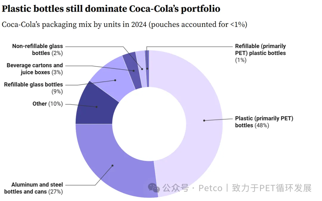 可口可乐全球首要包装可回收性达到99% 塑料包装再生含量18%新闻来源: 发布时间:2025-10-15 09:49:00 根据可口可乐最近发布的2024全新环境报告,2024年,99%可口可乐的首要消费品包装是可回收的,这比该公司的2022和2023年一直维持的90%可回收性比例有较大幅度增长。 可口可乐在去年年底发布了2035年目标,其中包括首要包装当中至少使用35%的再生材料,再生塑料比例提高到不低于30%,以及回收至少70%投放于市场的塑料瓶和易拉罐。 在新报告当中,可口可乐在2024年将首要包装再生含量提升到28%,塑料是使用最多的包装材料,其中PET包装的再生含量为18%。可口可乐原生塑料的使用量在2024年增长到294万吨,而2023年,塑料使用量曾经减少至283万吨。塑料瓶仍然是可口可乐最大的包装形式,袋子(pouch)则不到1%,详细见下图: ![]()