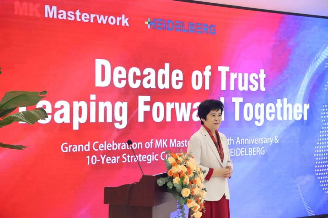 李莉女士表示:“凭借创新且经济高效的技术,MK Masterwork 近年来持续蓬勃发展,现已成为中国印刷包装行业印后加工高端装备的领先提供商。通过与海德堡这样实力雄厚的合作伙伴携手,我们成功跻身全球该领域的领先供应商之列。未来,我们将继续携手,进一步巩固并扩大这一稳固的市场地位。”