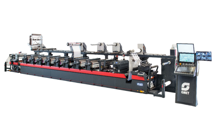 欧米特KFLEX高精度柔版印刷机的核心特点: 独立伺服驱动:压印辊与版辊采用独立伺服驱动设计,传动精度更高,为稳定印刷奠定基础 灵活双向印刷:支持二次追印,正反印无需使用反转架,从根源避免材料刮伤,保障印品完整性 便捷离线维护:柔印头采用可抽取式结构,可移至线下进行保养与维修,不占用主生产时间,提升设备利用率 广范围材料适配:色组间可加装张力控制辊,能稳定印刷轻型卡纸、片材等特殊材料,拓宽生产适用场景 按需供墨设计:短单生产可选 “V” 型墨槽,长单生产搭配 10L 油墨桶自动加墨,兼顾小批量灵活与大批量高效 在线清洁功能:印版出现脏点时无需停机,可直接在线清洁,减少生产中断,保障连续作业效率 “On the Fly” 即时预套印:传承欧米特 X6 及以上机型配置,电眼读取主色标后,伺服驱动版辊即时对位,无需手动设置纸路或人员干预,套印精度更稳定 Vision-1智能套印:纵、横向套印可即时自动对位,套印质量不依赖操作人员技术水平,降低人工成本与误差风险 模块互换兼容:柔印头可与模切座灵活互换,轻松满足特殊工艺标签的生产需求,提升设备多功能性 ECDC极速模切:更换模切滚筒及刀具时无需借助升降装置,操作便捷高效,缩短换单时间 高效热风干燥:配备长烘道热风干燥单元,可加装 2 个热风风箱,适用于水墨高遮盖白打底或大面积印刷场景,运行速度可达 120 米/分钟,兼顾干燥效果与生产效率