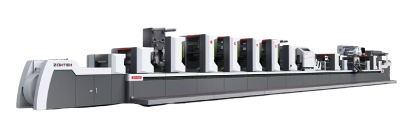 这款PS版卷对卷胶印机可使用UV油墨进行印刷。标准配置包含智能放卷机、PS版胶印机组、收卷机、自动纠偏装置、LED-UV干燥装置、酒精润版制冷循环水装置以及二次追印功能。