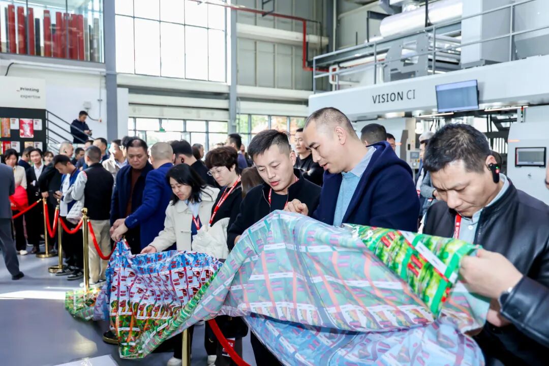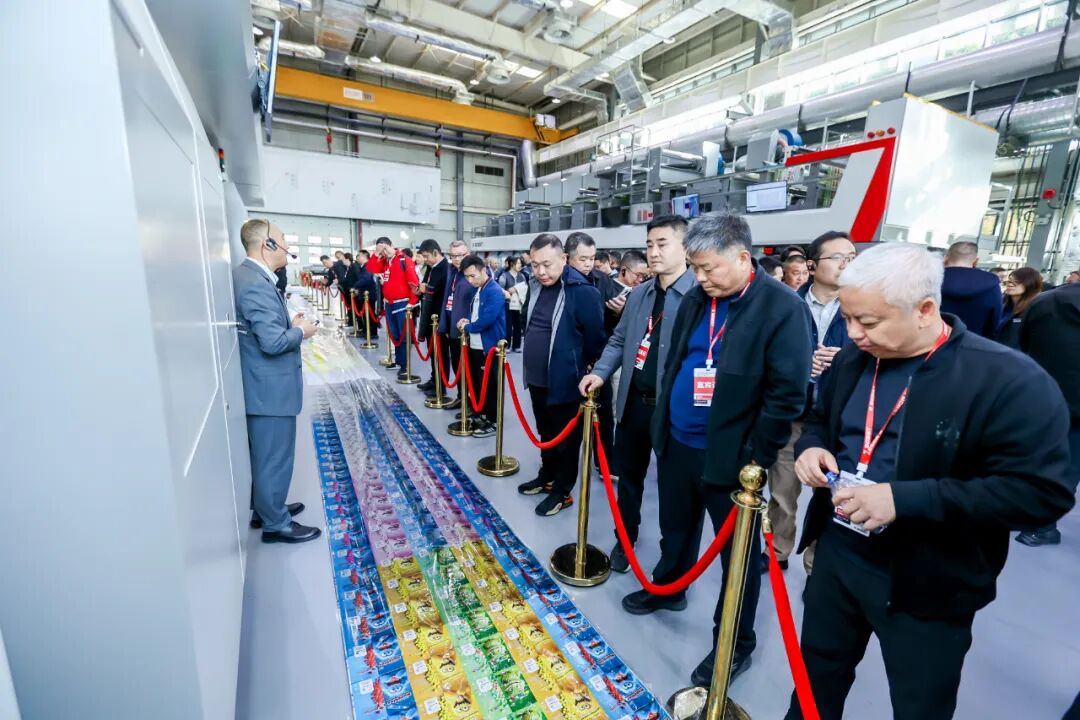 ![]() ![]() ![]() ![]() 现场演示了RS 3.0 PLUS凹印机在MDOPE 25µm 薄膜上的高速稳定运行: 精通MDOPE:突破性地展示了在线拼接操作,成功攻克了业内公认的MDOPE材料拼接难题,确保成品完美品质。 自动化设置:演示了oneSET功能,实现从PDF订单到机器最优设置的离线创建和一键传输,真正达到“零准备时间”。 低浪费:采用TAPS拓扑自动套准系统,在MDOPE材料上仅需约130米废料即可实现完美套准,将启动浪费降至极低水平。 高速稳定性:机器运行速度迅速提升至350米/分钟,全程展现卓越的套准精度和稳定性。