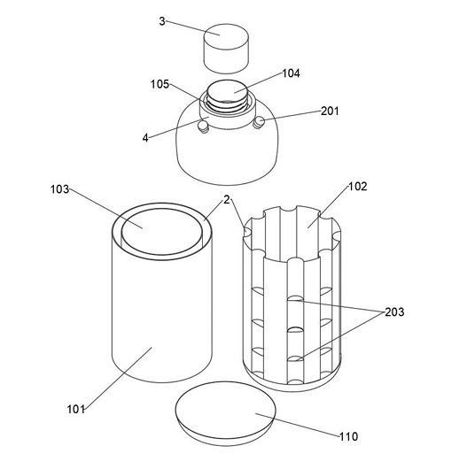 创新分析:该专利首创“三层瓶体+独立气腔系统”结构。通过在第一、第三层PET瓶体间嵌入带有多腔体的第二层,并利用锁紧环形成可调节气压的独立气腔,实现了三重创新:物理抗冲击(气腔缓冲)、动态密封(拧盖时加压增强气密性)和隔热提升(气腔形成隔热层)。它从被动防护转向主动增强,解决了运输破损与高温存储的行业共性难题。
